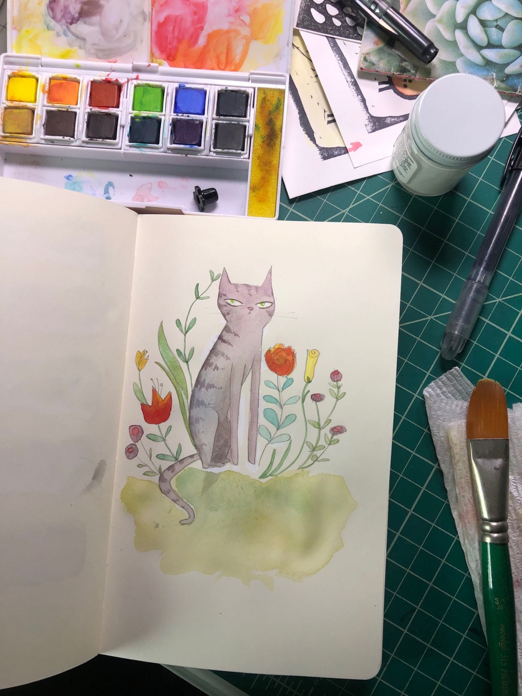 cat, doodle, doodles, illustration, sketchbook, watercolor