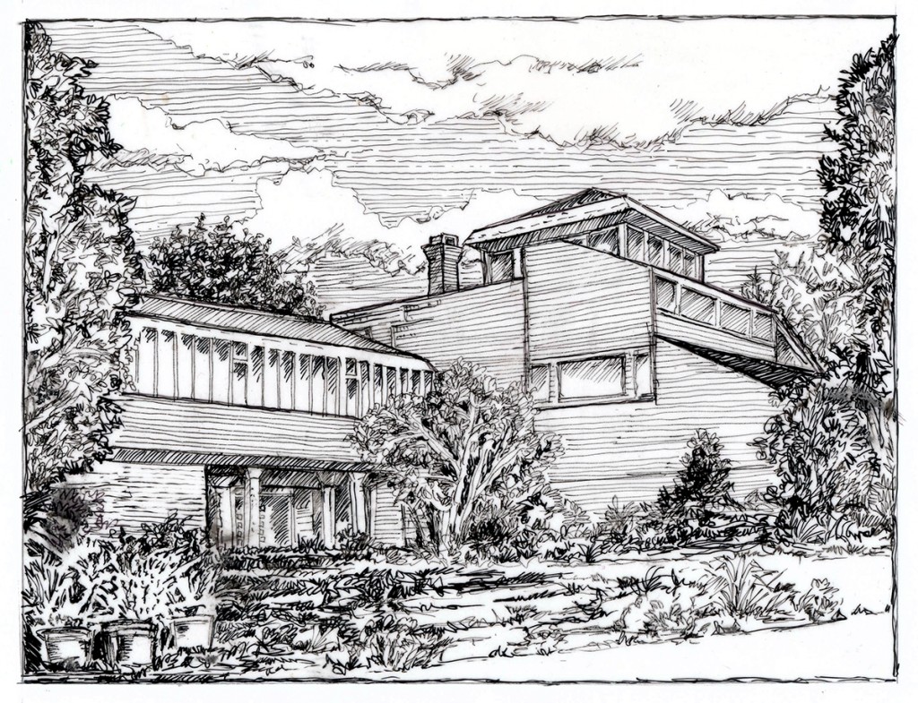 Architectural subjects are not my penchant....but this is a pen line drawing of our house which I did a few weeks ago near the beginning of the "stay at home" phase of our lives. Seemed a fitting subject. Just a couple of micron pens on a smooth surfaced paper.