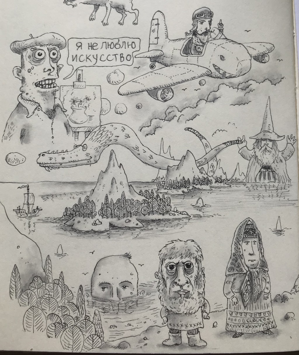 Oh man ! I love all these characters! Especially the glasses wearing serpent/dragon thing floating above the islands. Reminds a bit of the Never Ending Story.