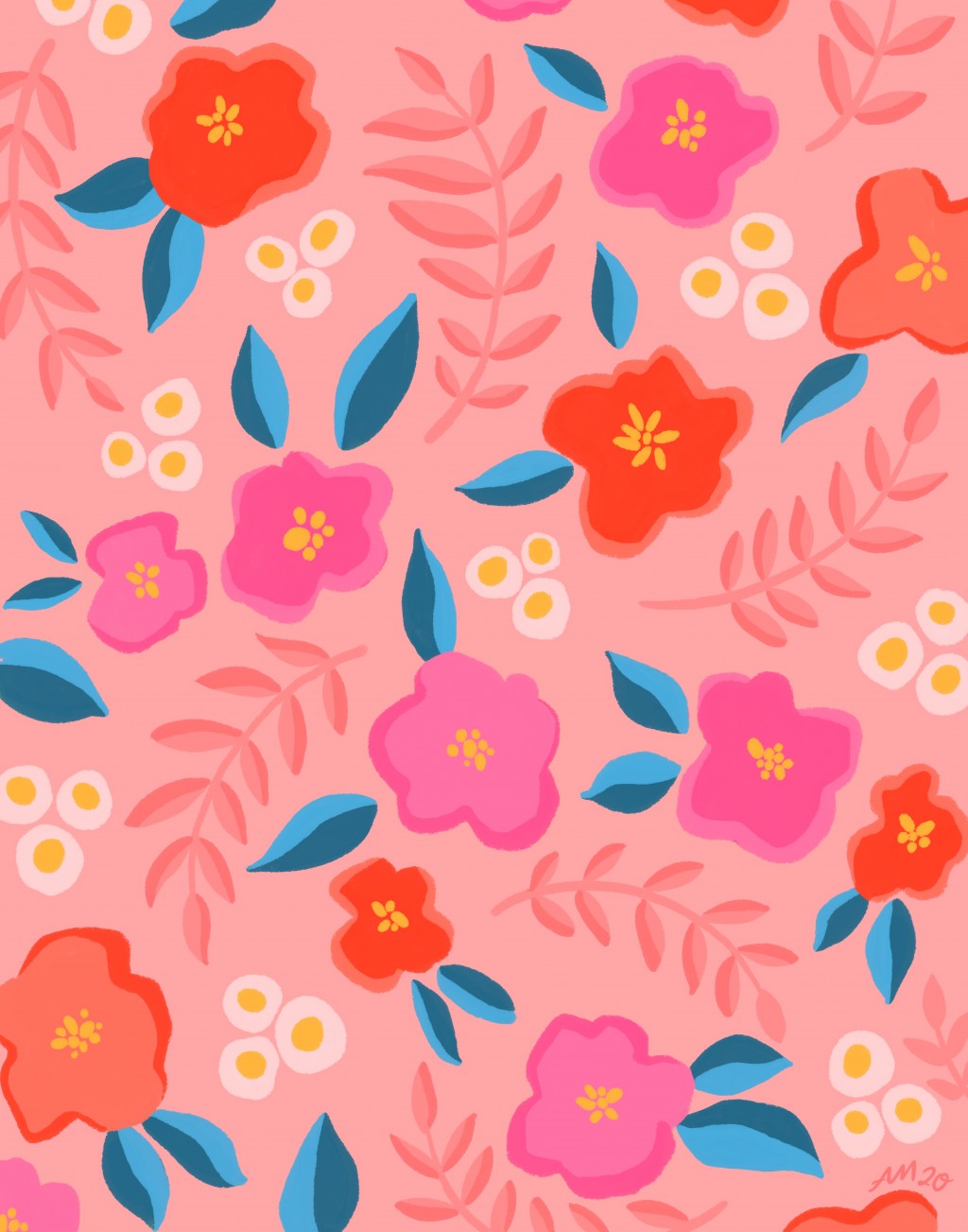 floral, flowers, illustration, procreate, surface design, textile design