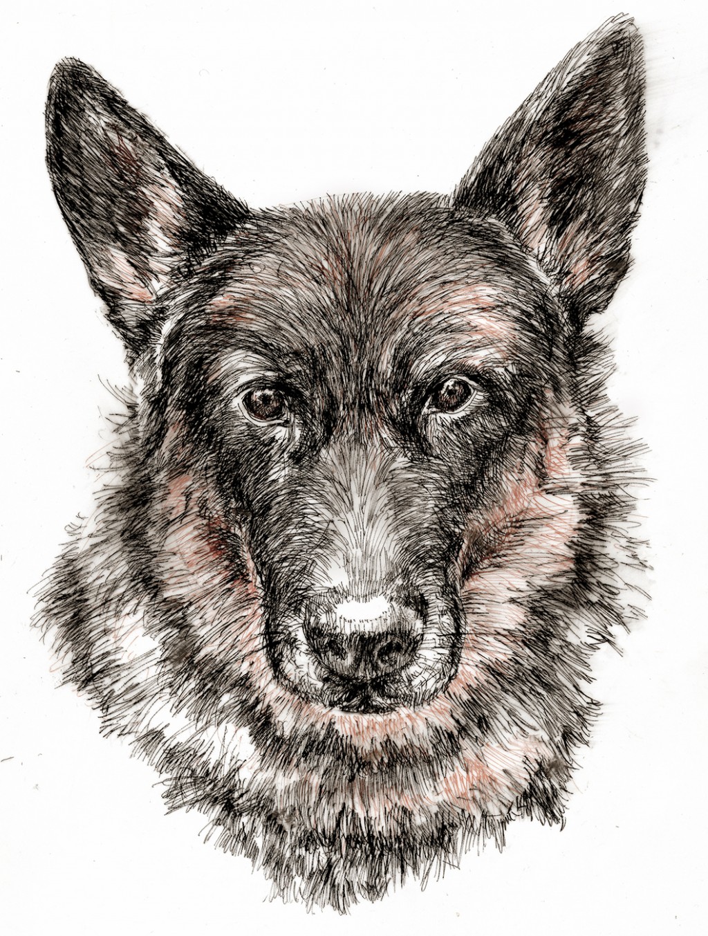 @AnneLotz She is a lovely girl, indeed. Thank you for the kind words about my drawing, too. She is still top dog around here at eleven and a half years old....fairly elderly for a German Shepherd.
