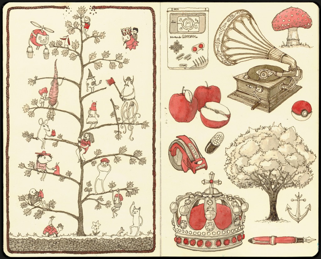 Holbein watercolors and Noodlers 41 Brown ink on 6"x8" Strathmore mixed-media paper. Drawn with a Pilot Custom 823 loaded with an extra-fine nib.