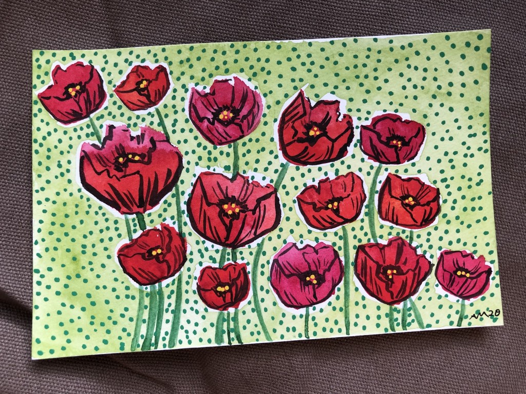 doodle, drawing, floral, flowers, illustration, poppies, watercolor