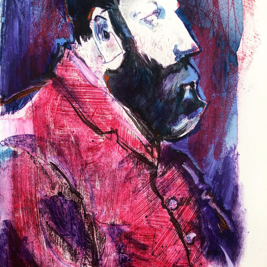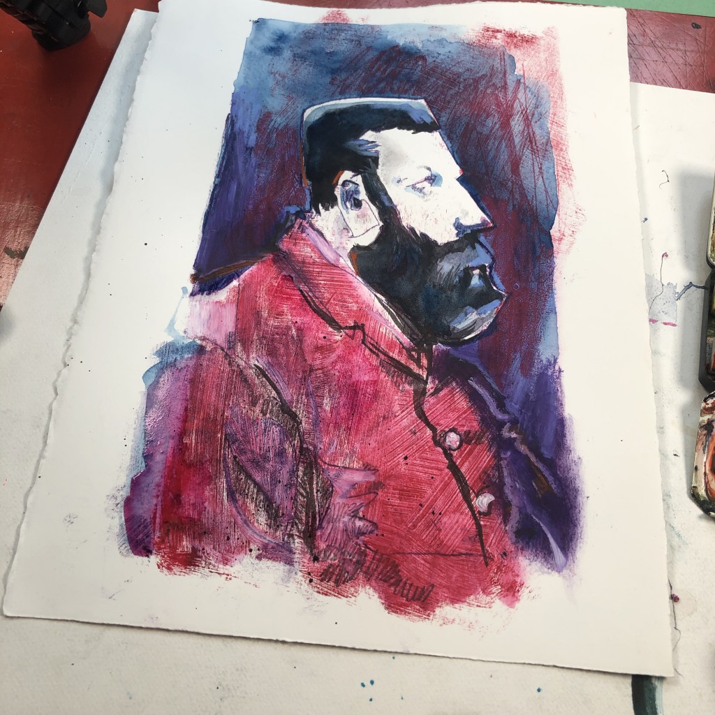 My latest illustration created for an illustration technique demo video. Oil drawing transfer technique. Watercolor resists the oil drawing on the paper. Sometimes oil and water do mix.