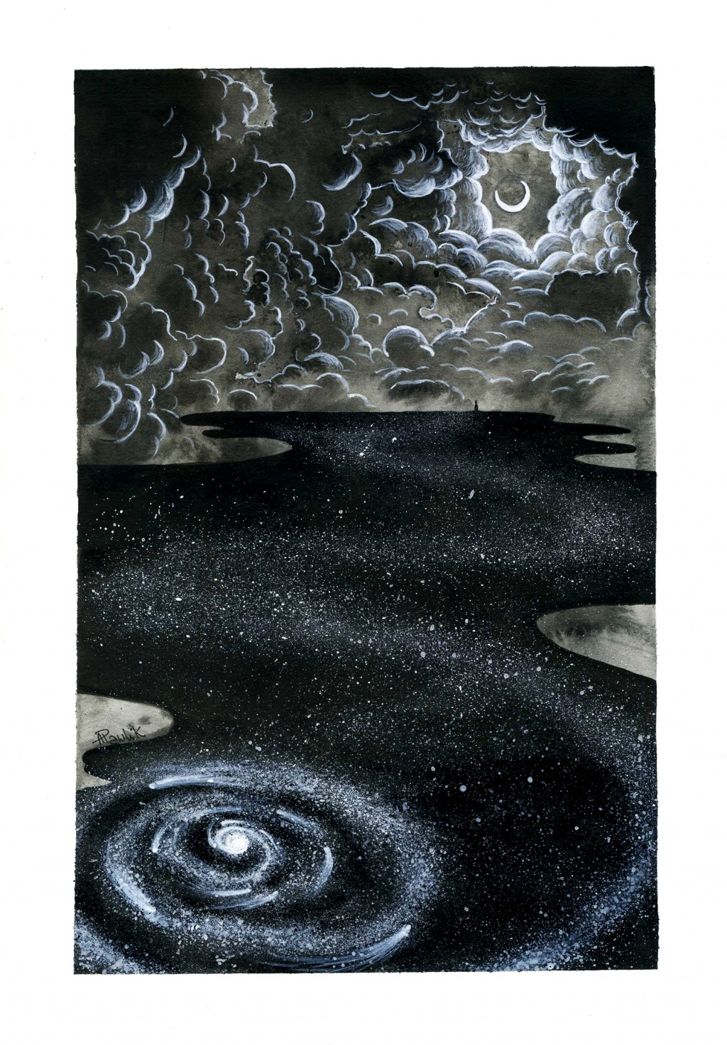 doodling, drawing, dream, illustration, ink, moon, night, painting, sketchbook