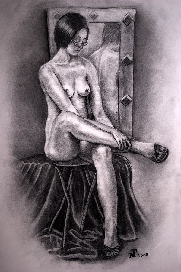 anatomy, charcoal, charcoal pencil, compressed charcoal, drawing, female, figure, figure drawing, life drawing, seated, willow charcoal