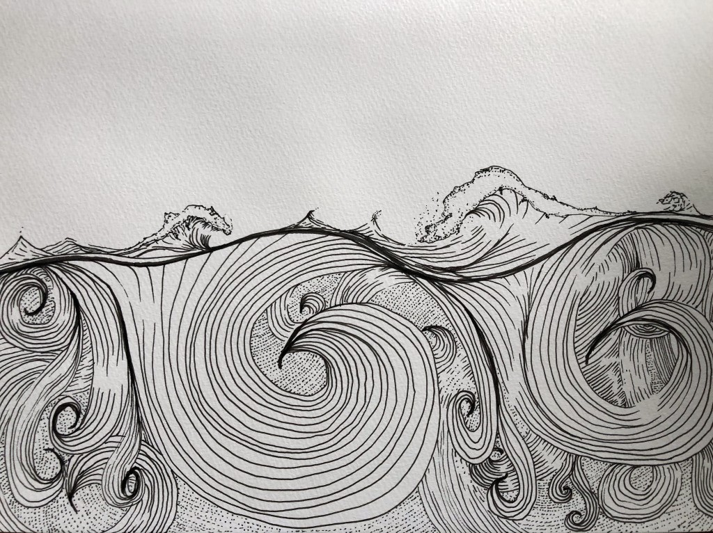 doodling, drawing, illustration, nautical, ocean, pen and ink, sketchbook, waves