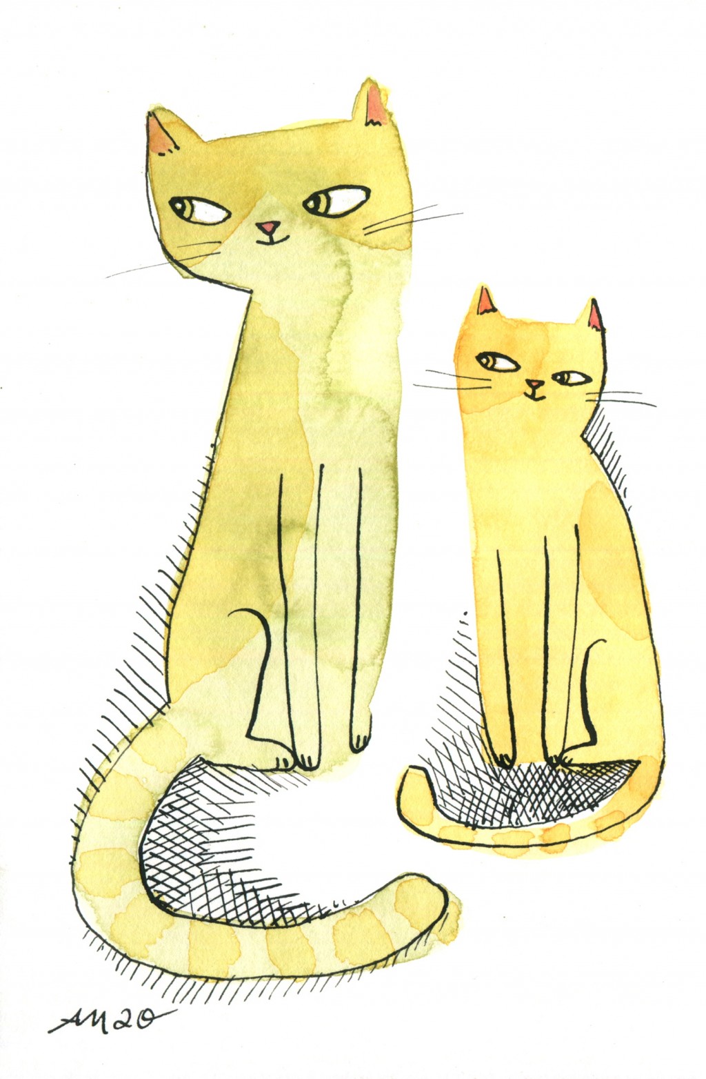 cats, drawing, illustration, watercolor