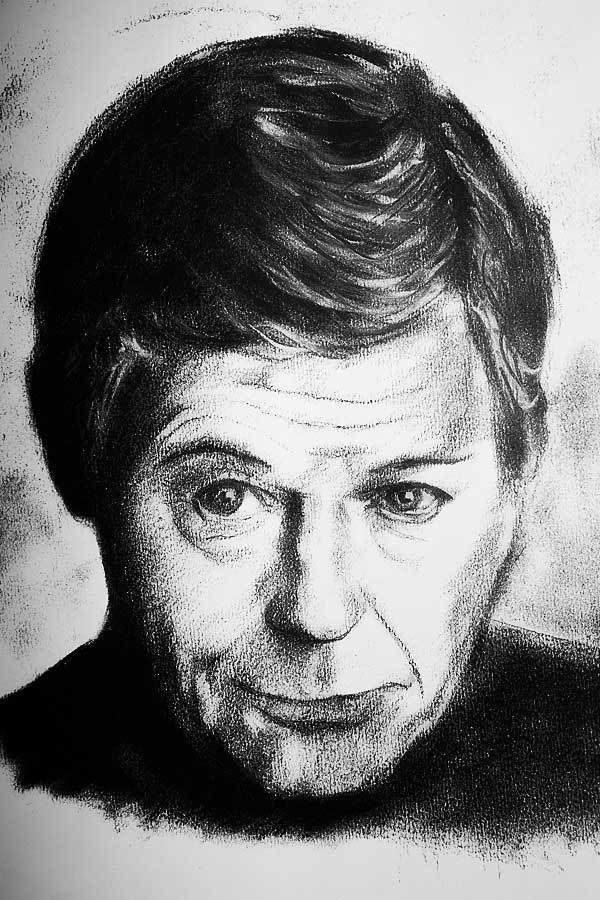 Willow charcoal and graphite pencil portrait of Patrick Stewart (a.k.a. Captain Jean-Luc Picard from "Star Trek"). A4 Size or 21cm x 29.7cm.