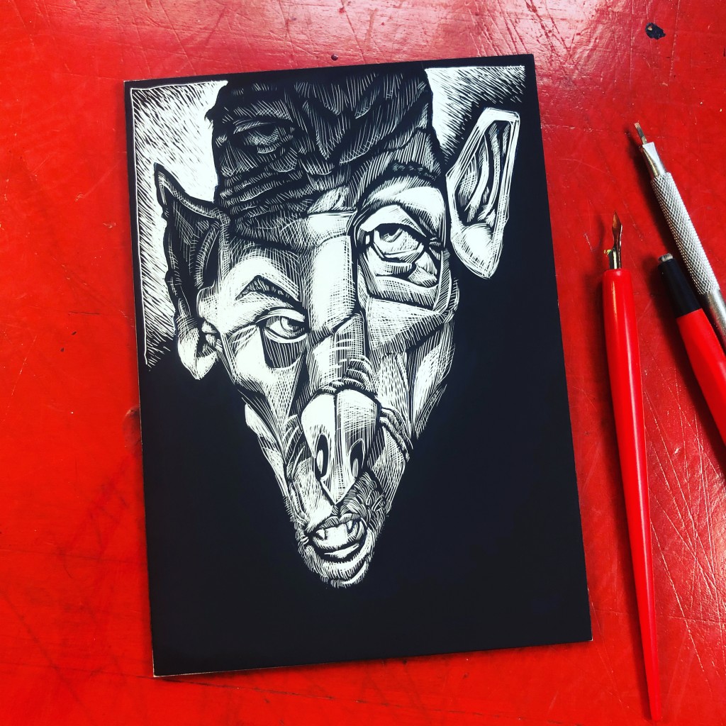 Halloween’s a bit early this year. I’m working on a scratch board technique video featuring a drawing of Nosferatu from my sketchbook.