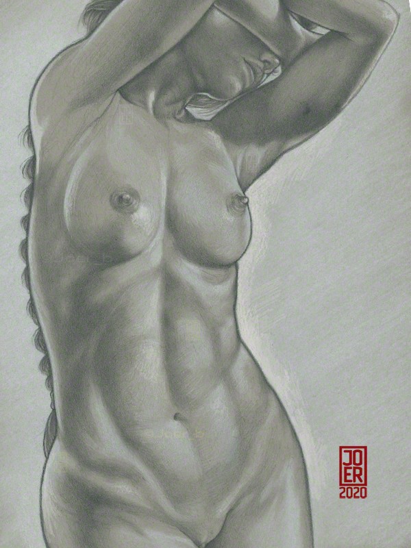 H, 4B pencils and white Prismacolor pencil on 9” x 12” Strathmore Toned Grey sketchbook paper.
