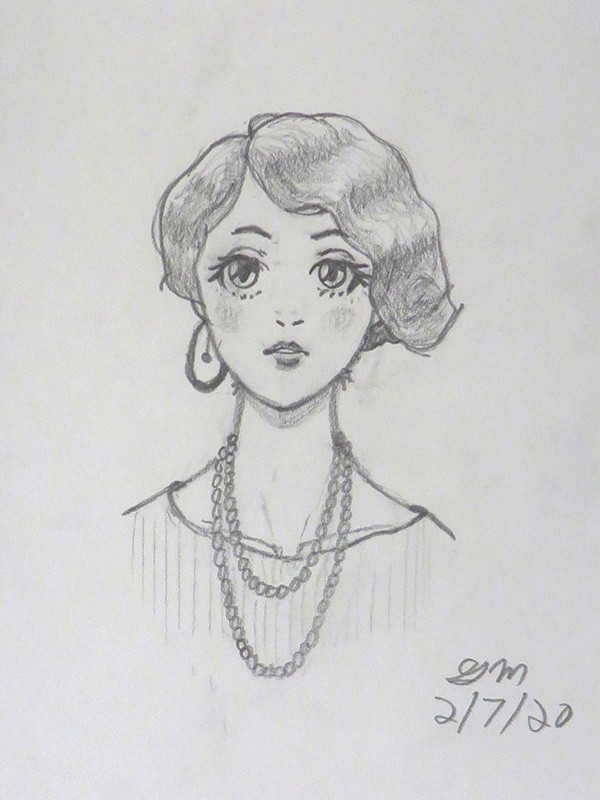 This was inspired by portraits from the 1920's. I've read that some girls who adopted the flapper style only wore one earring because their hair covered the other ear.