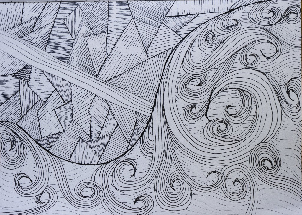 curved lines, drawing, illustration, pen, pen and ink, sketchbook, straight lines, yin and yang
