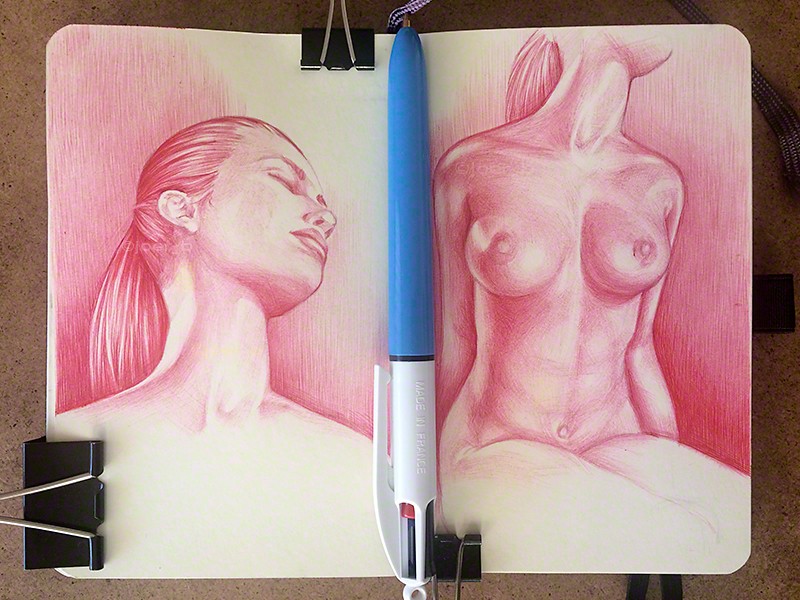 Bic4 sketchbook drawing of my hand.