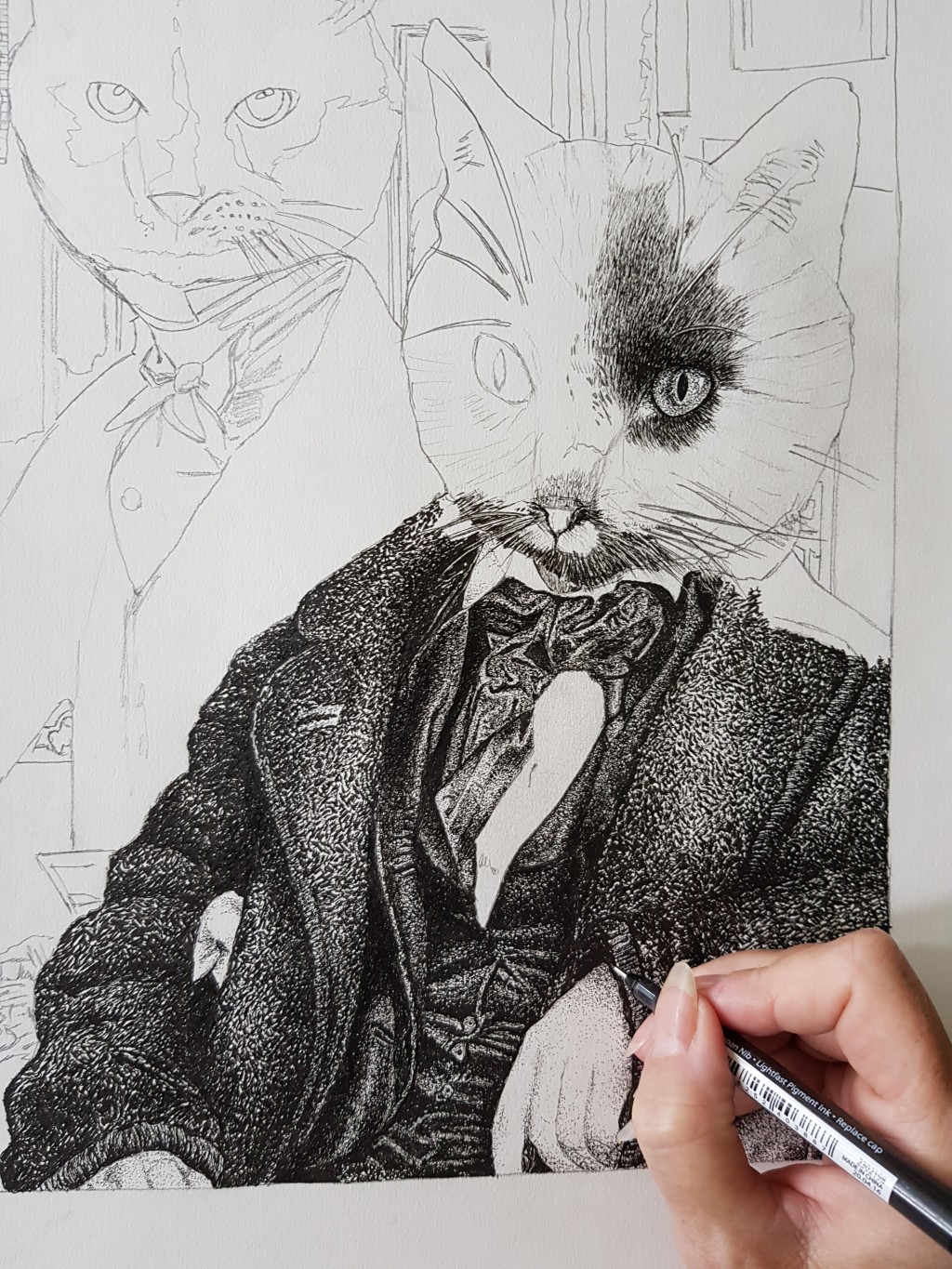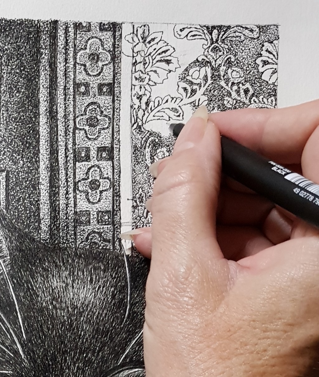 I have been working on this A3 double 'Pets in a Portrait' and I can't share the finished piece until after christmas as it will be a gift. I'm so chuffed with it, so heres some sneaky peaks that don't give too much away!