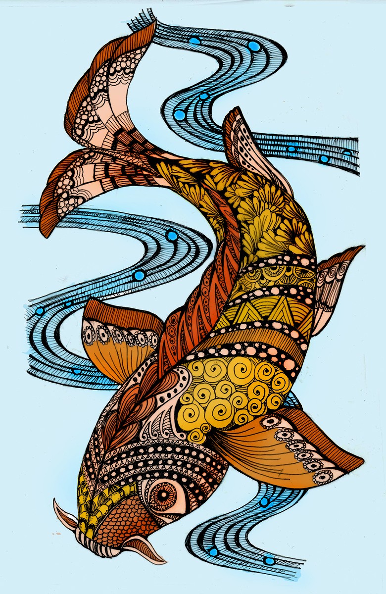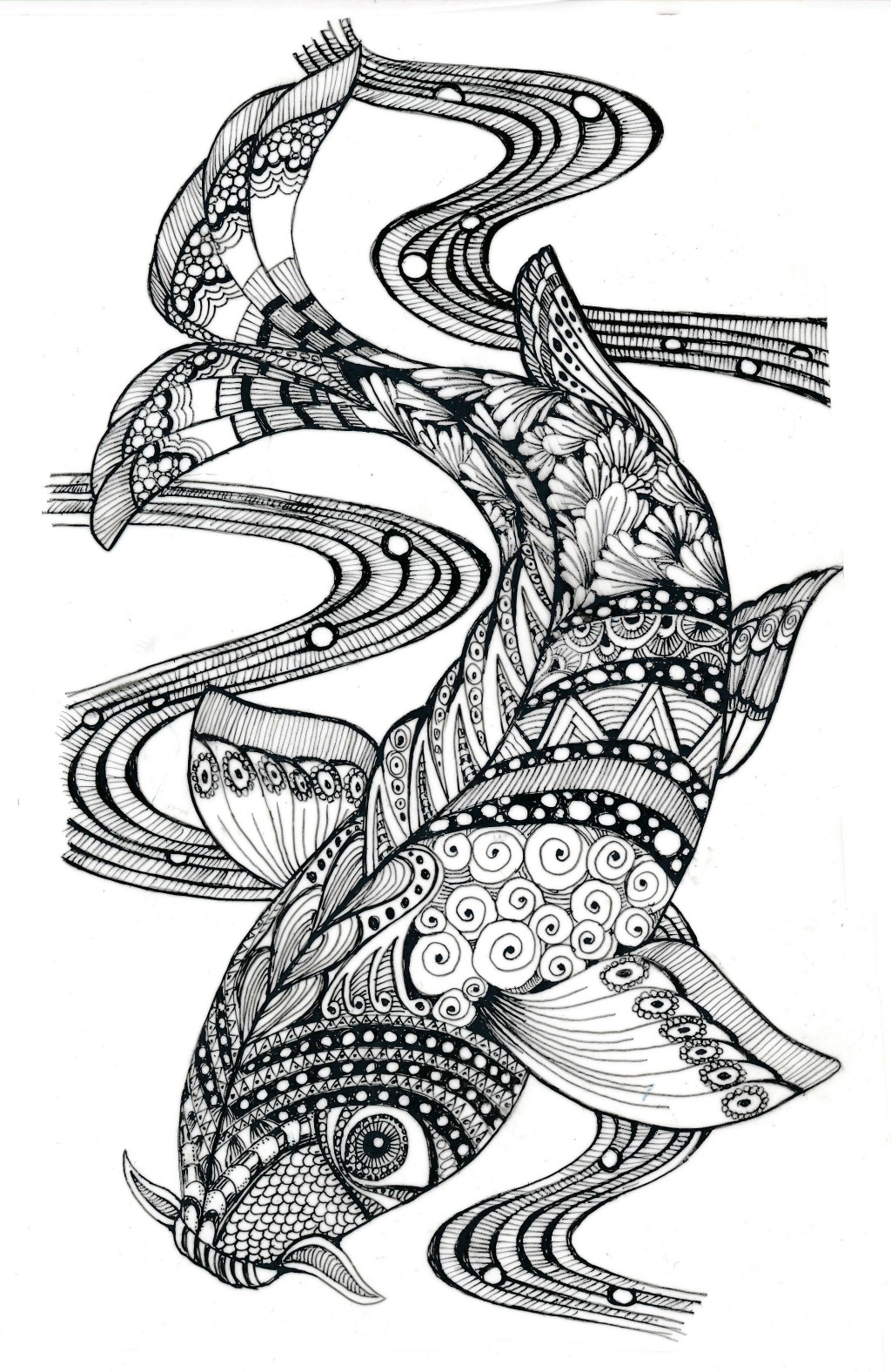 @JoerB Thanks so much. It's only the second "tangly" thing I've done. A mandala of a few months ago---which was only marginal (posted here on DA). I just added six new koi to our big pond last week (friend was retiring their pond)...so commemorated that with a drawing for Inktober!