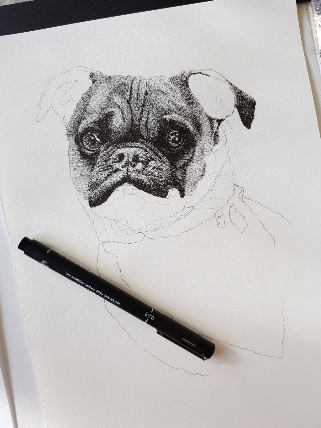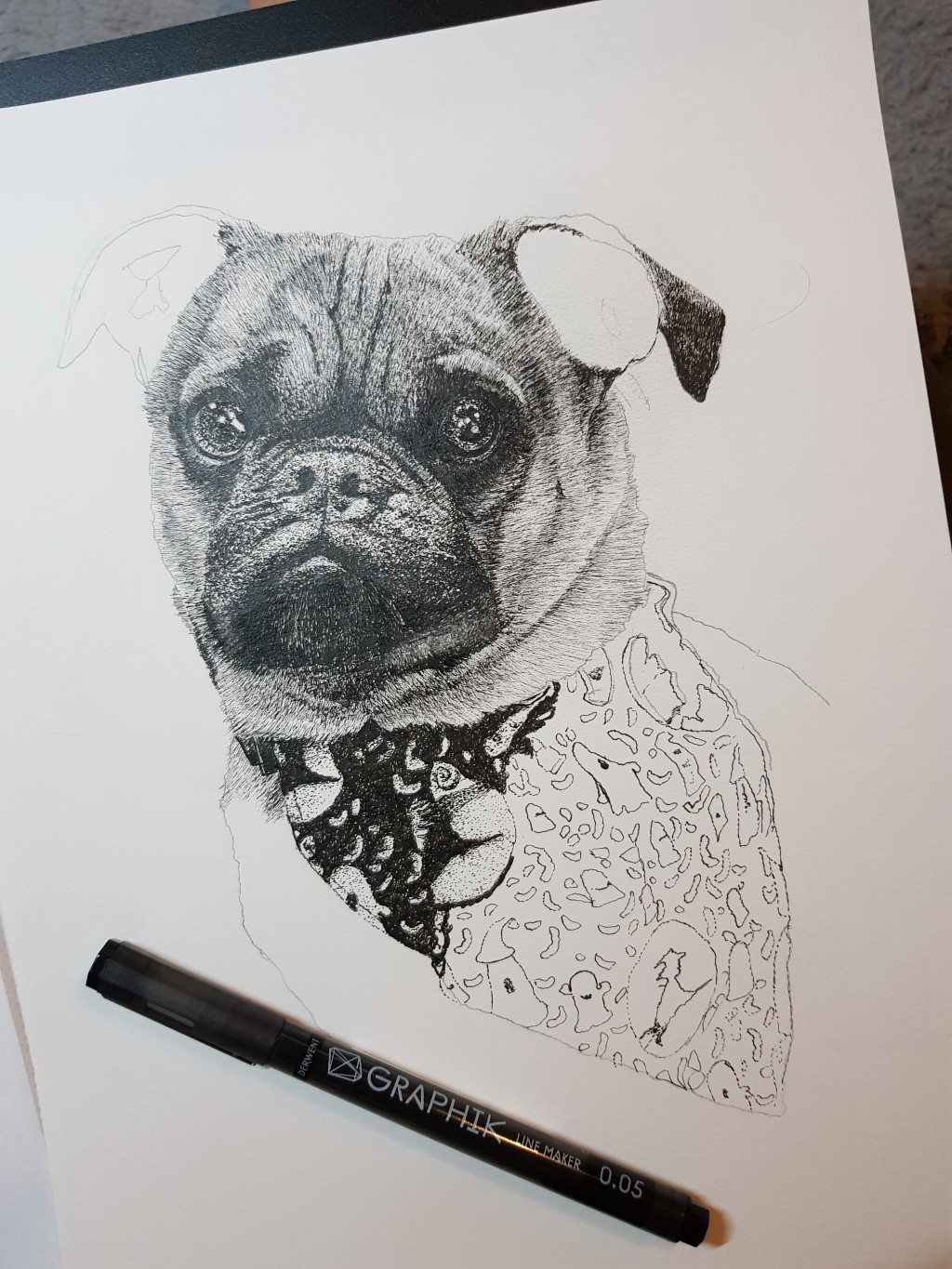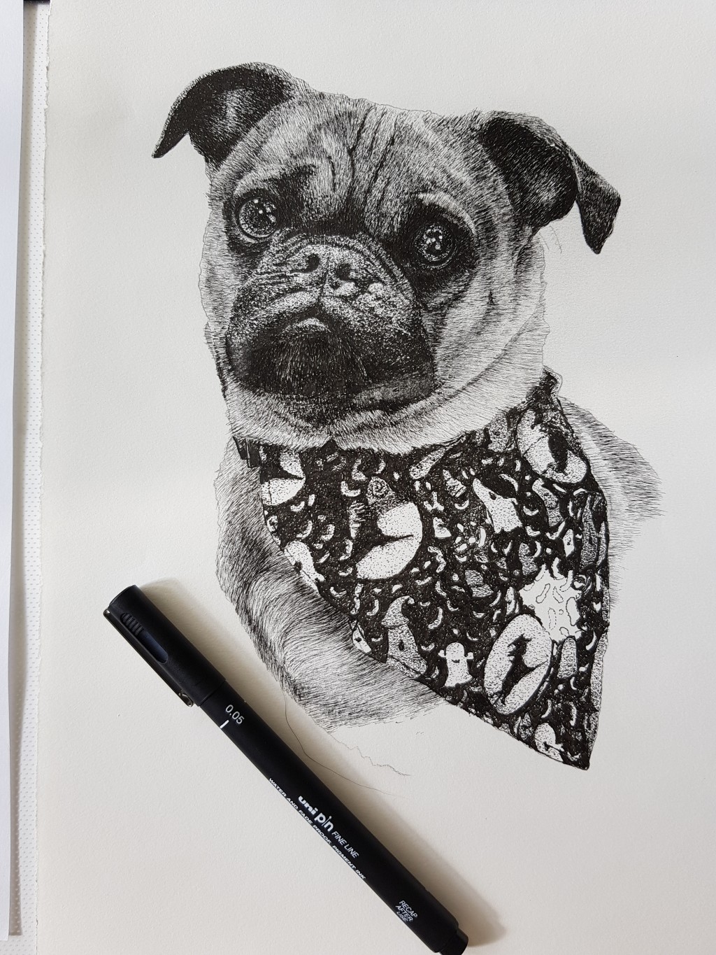 Commission portrait. Gorgeous tabby cat. Drawn in black and white line using fineliner's.
