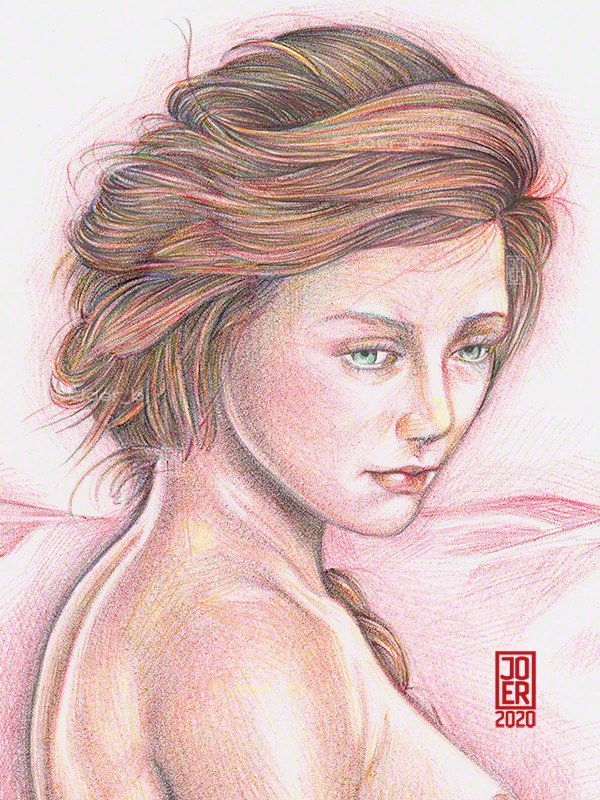 Bic4 Ballpoint Pen, Sanrio Novelty 10 Colour Ballpoint Pen on Archival 8.5" x 11" paper. Model: Meadhbh (Maeve)