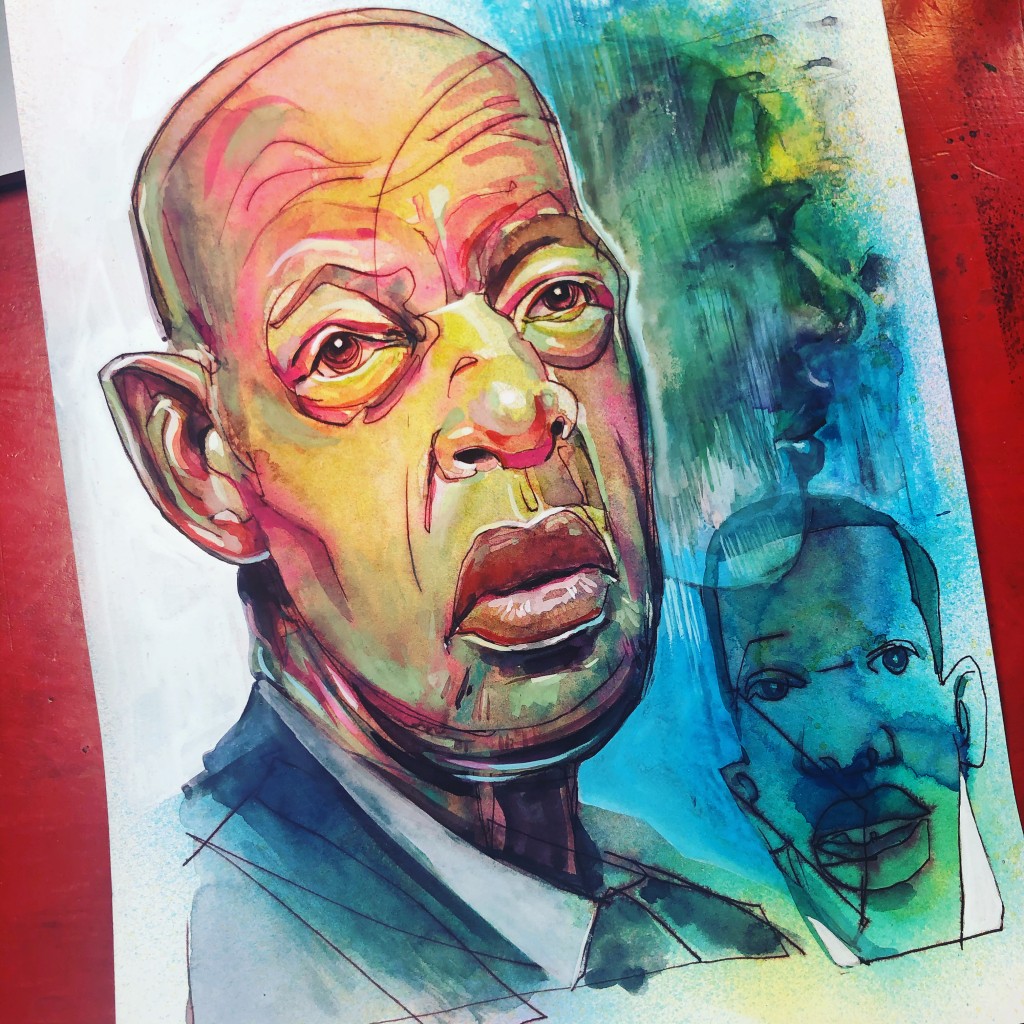 In memory of the great John Lewis. (1940-2020) Original ink and watercolor portrait painting on Strathmore 500 Series 4-ply Bristol illustration paper. Signed by the artist. Unframed.