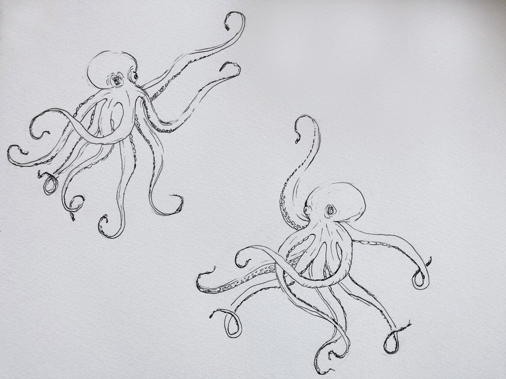 drawing, drawn, illustration, marine, octopus, pen and ink, sea, sea art, sealife, sketchbook