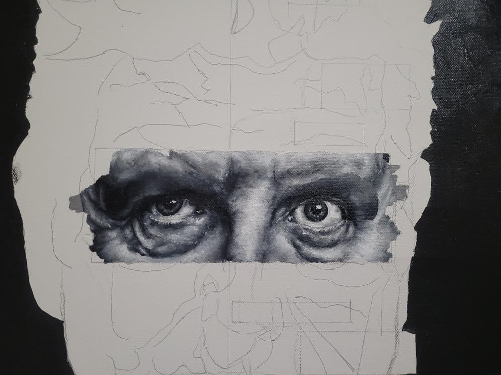 Over a year ago, I finished my Robin Williams portrait, and I decided I wanted to create a series of different black and white portraits. So far, this is the happiest I've been with a piece in a while. There's no expectation, there's no real pressure on this, it's me falling in love with painting again. I've only been working on this for a week, so there isn't a ton of progress. I suppose I'll reveal who the person is later once more progress is made but for now, enjoy.