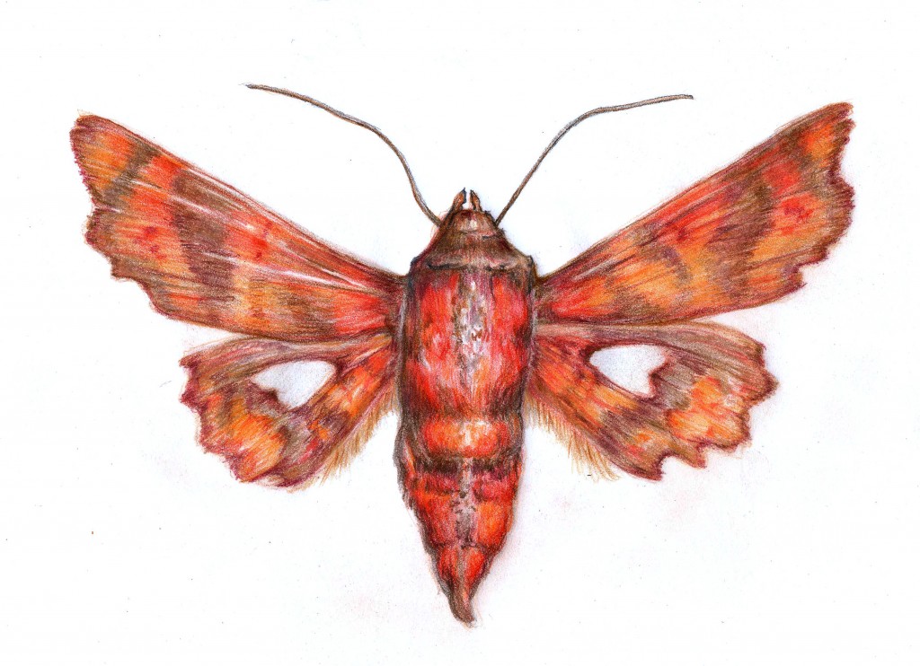 Dysodia is a friend's avatar name on another site. I drew this colored pencil drawing as a tribute to her. There are several "leaf moths," this one's common name is: Picture winged leaf moth.