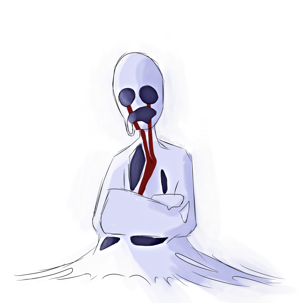 A far cry from how I usually draw. The lineart is messy and I colored sloppily, with the watercolor brush. This guy is the first out of three paint moster generations --- yes, this guy is made of white paint. The mahogany lines aren't blood, but rather mahogany paint. I may or may not post the later generations of Geoff (the name of three paint mosters, all related, all from different generations). Drawn with FIreAlpaca.