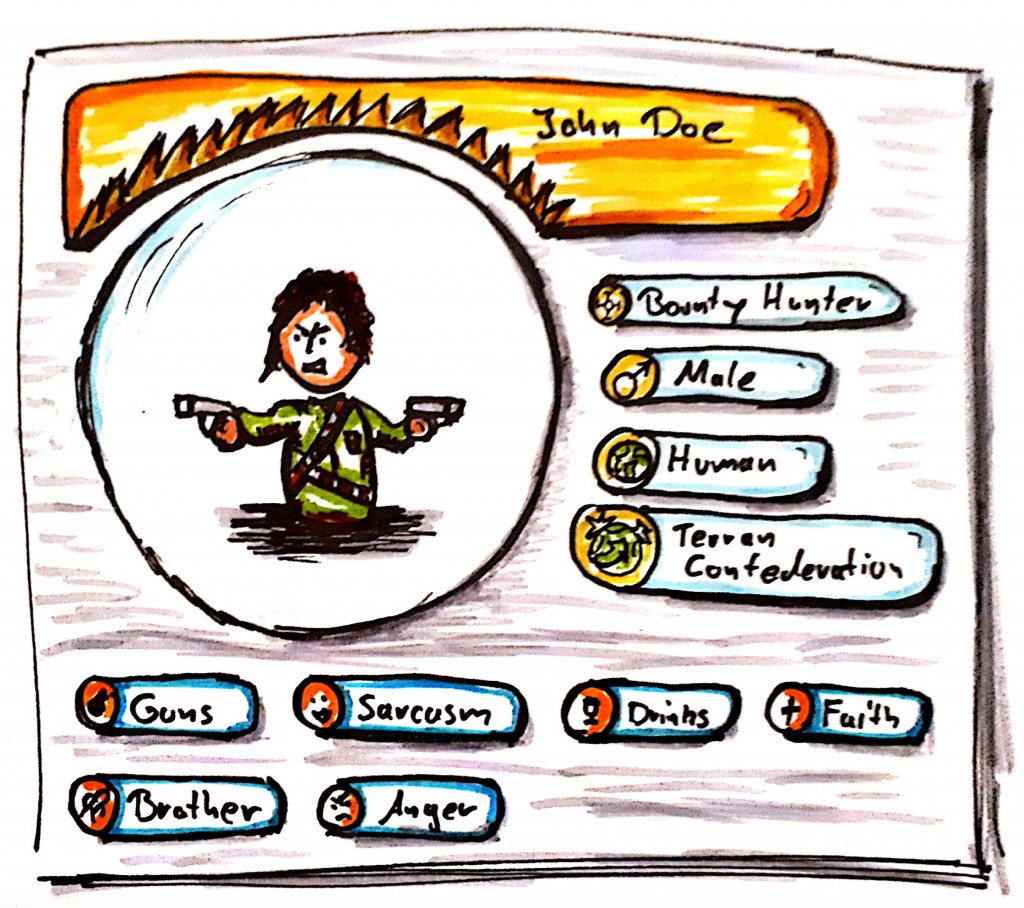 Doodled a character card. Some retro gaming flashback.