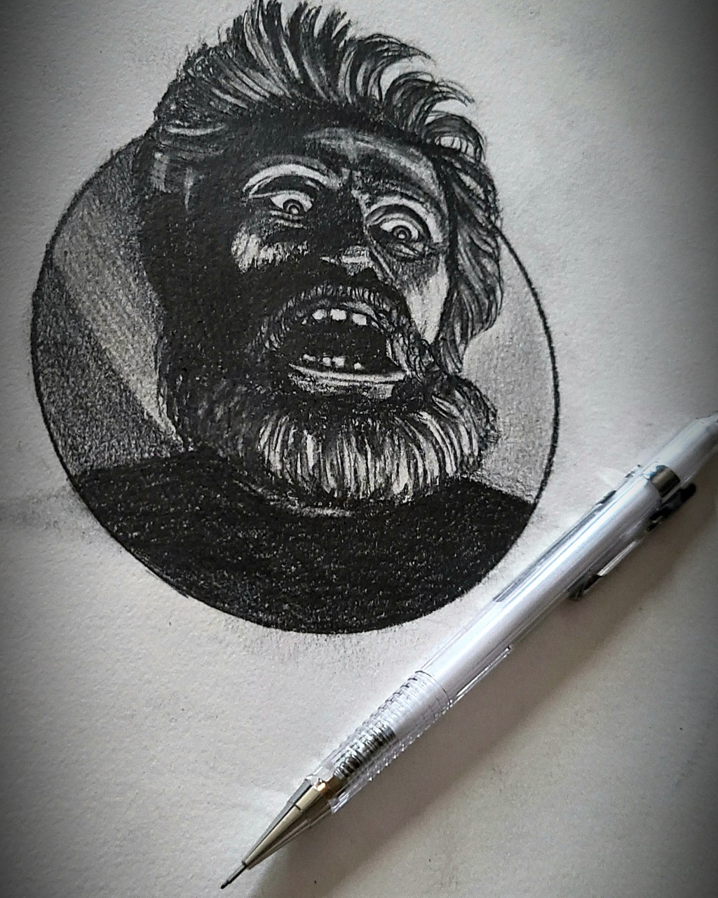 Graphite and ink drawing.