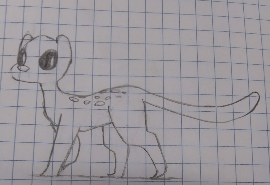 It's not exactly a cat. Based on Eugene the Jeep from Popeye the Sailor Man. Look it up --- it looks nothing like a cat. But, alas, my subconcious mind went, "tail, means cat," and I drew this. Their name is Jeepers.