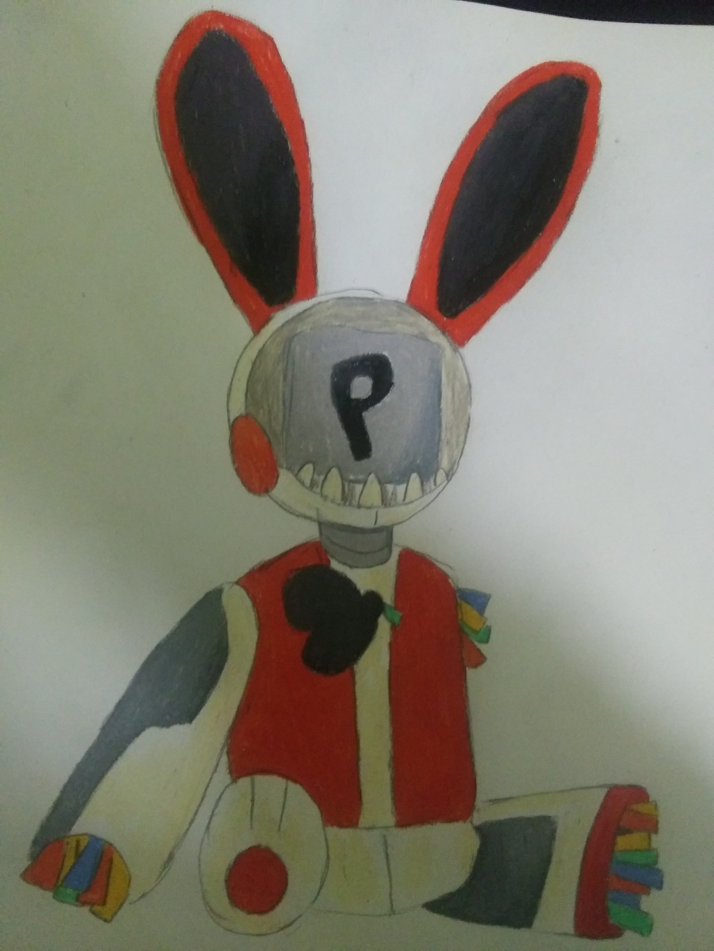 A plush version of withered Preistor. He's probably my favorite character... though, that might be because of the withering part of him, which was inspired by withered Bonnie.