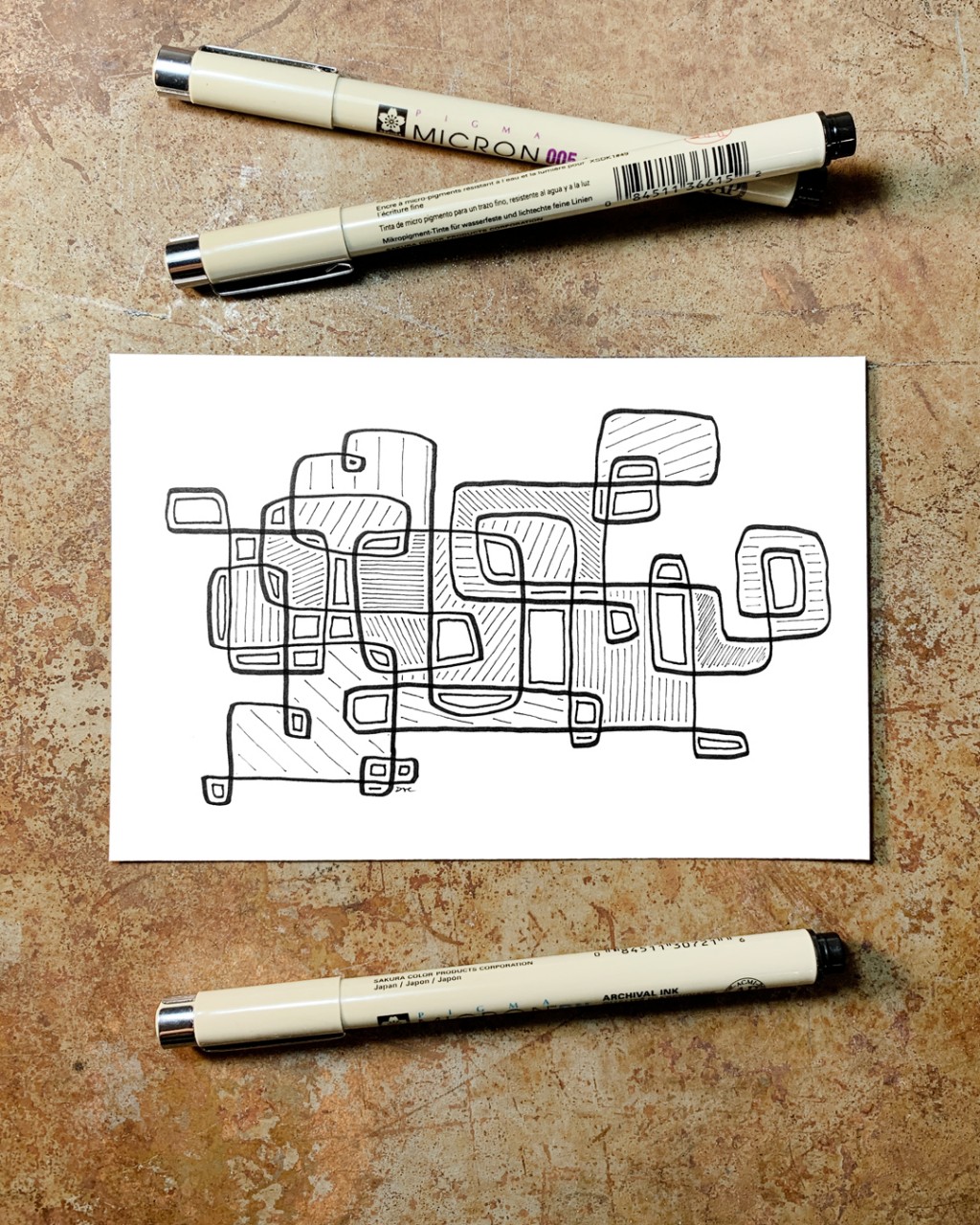 "Whirlwind 14”, an original drawing. Micron pens on archival paper. Size: 4” x 6”. Title, signature, and date in the back of the drawing. This drawing is the 14th in a series of drawings posted over a period of 100 days. The original post date on this drawing was September 14, 2020.