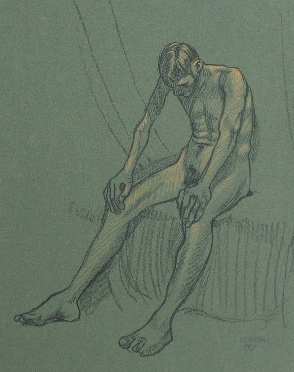 This was a model in a figure drawing class leaning on a black pillow. She had awesome hair.