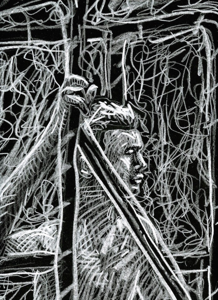 This was a model in a figure drawing class leaning on a black pillow. She had awesome hair.
