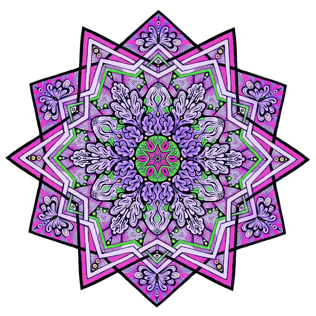 This was drawn in Spiralty (a free Windows program) and colored in Photoshop. Great fun and very relaxing. I am definitely going to be making more mandalas during the rest of the pandemic.