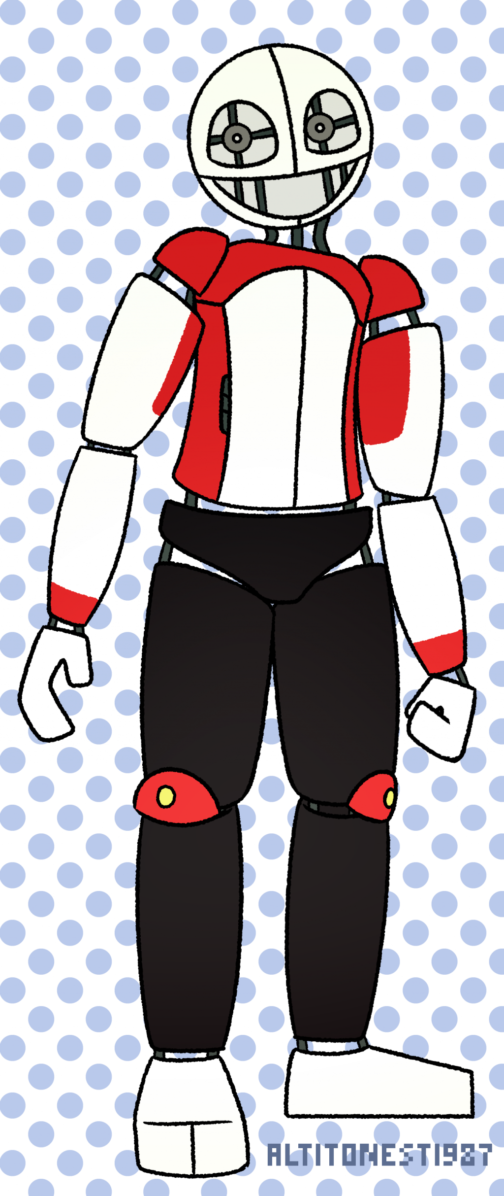 The M capturer before Jester had a mental breakdown. It's basically just a recolored Springlocker, a suit which looks like an Altitone animatronic, but hollowed out so a person could fit in. It has a full range of movements, and a voice changer, but it doesn't have a voice vix or anything like that. Drawn with FireAlpaca.