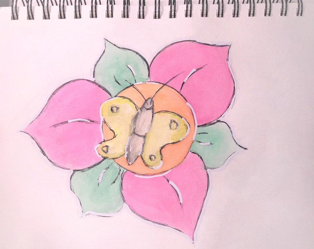 butterfly, doodle, flower, sketch, watercolor
