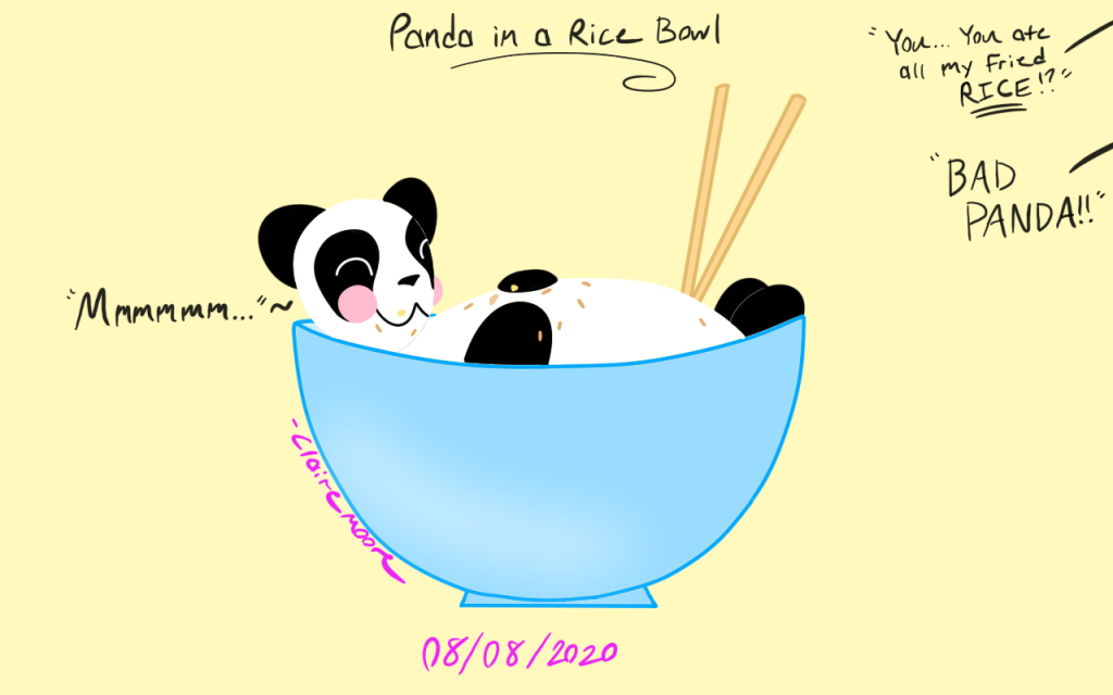 This is a digital drawing. Me and my family are fans of chinese food, so one day I decided to draw something based on chinese cuisine. I also love pandas and they're really fun to draw. Hope you like this fun little pic!