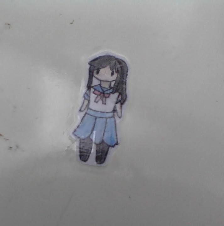 A small drawing of Ayano Aishi from Yandere Simulator. I made this so that I could use it as a little sticker to put on my computer :) The lighting's a bit bad but don't mind that.