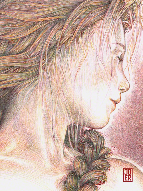 The source reference image was from an impromptu photo shoot I did several years ago. The available light in the room was magical and the model was just sitting there meditating.