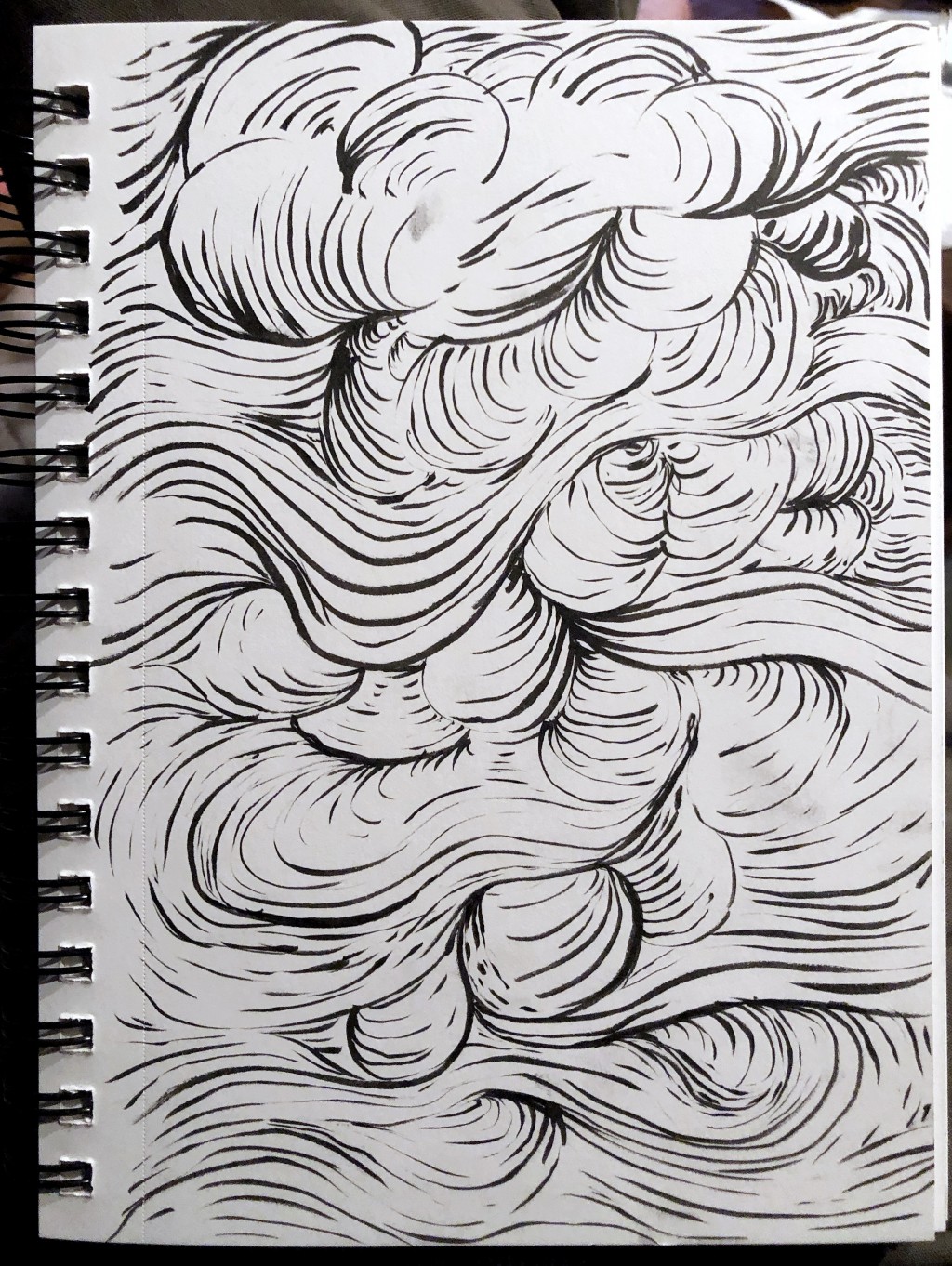 clouds, illustration, lines, pentel, pentel pocket brush, sketchbook, whimsical