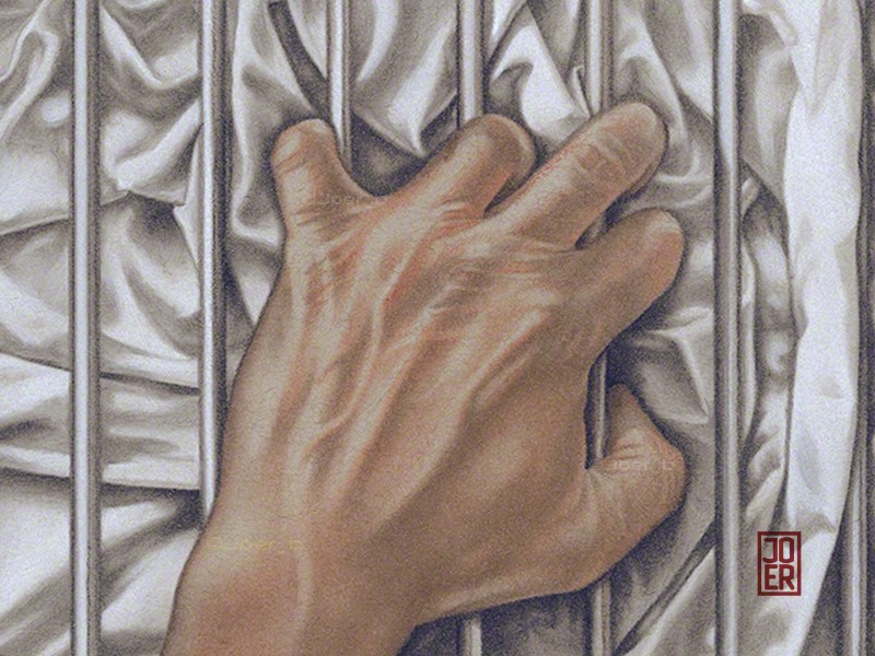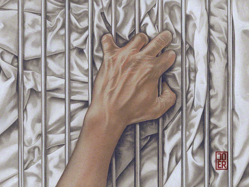 Some LGBTQ+ members of the community can’t openly love who they want to love, so the bars represent that barrier. The fabric, with all its complex folds and creases represents sensuality, desire and love. Love, in all its forms is a complex thing of beauty.------------- The companion piece to my previous post ‘Ecstasy.’ Agony and Ecstasy were always meant to be a diptych. The issue for me is that there is a two-year gap between the completion of the two - there is a noticeable difference in the the way both were drawn. Faber Castell pastel pencils, Black and White Generals charcoal pencils on 9” x 12” Strathmore Toned Grey sketchbook paper.