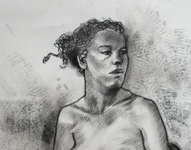 This was a model in a figure drawing class leaning on a black pillow. She had awesome hair.