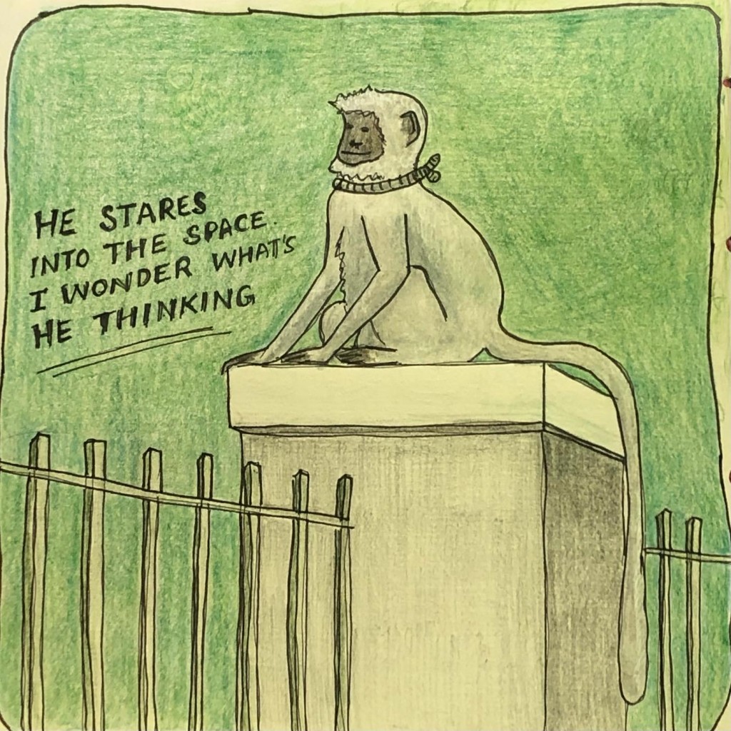 Found him sitting on a wall in the park where I go for a jog since pandemic started. Was so mesmerised by this magnificent beast. I couldn’t stop staring at him every morning. The contrast between the white fur and black skin. So shiny yet so peacefully he sat doing his job.