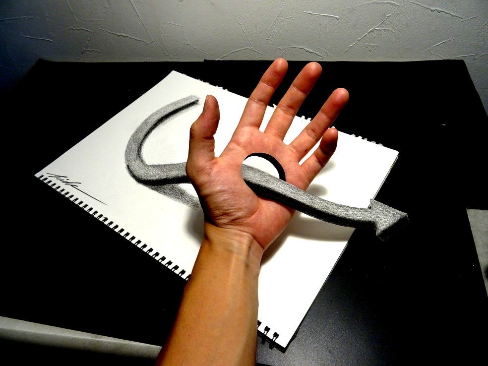 3D Drawing - Arrow penetrating the hand