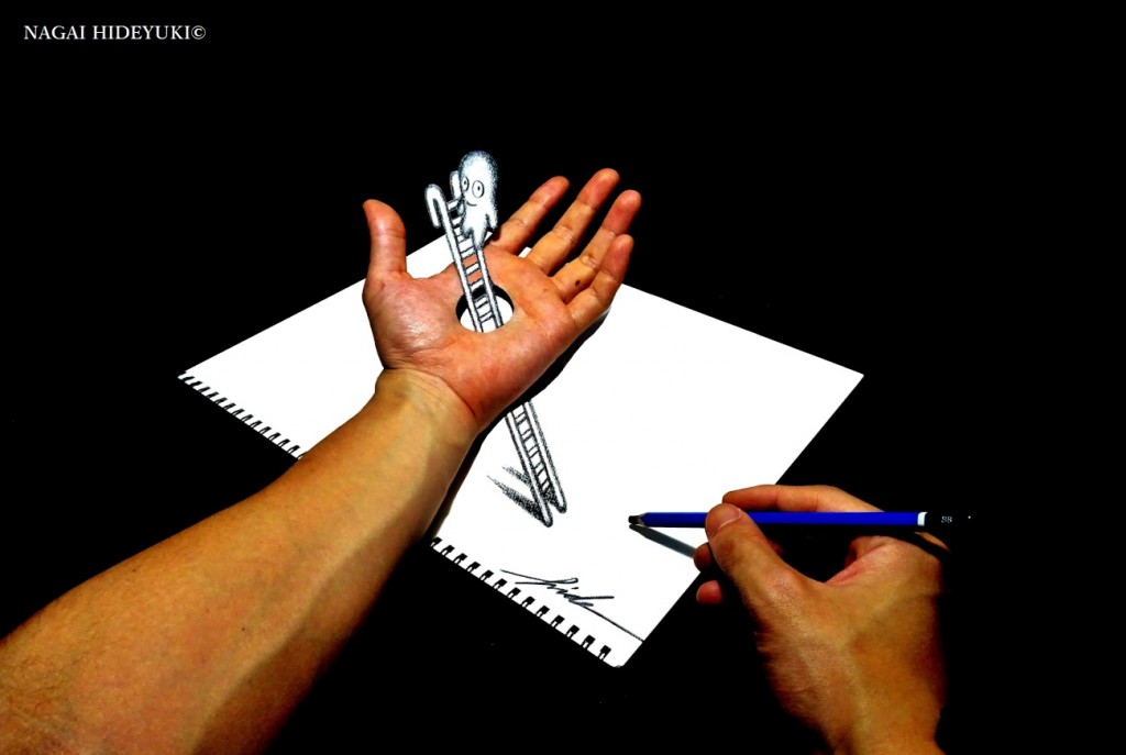 3D Drawing - Ladder penetrating the hand