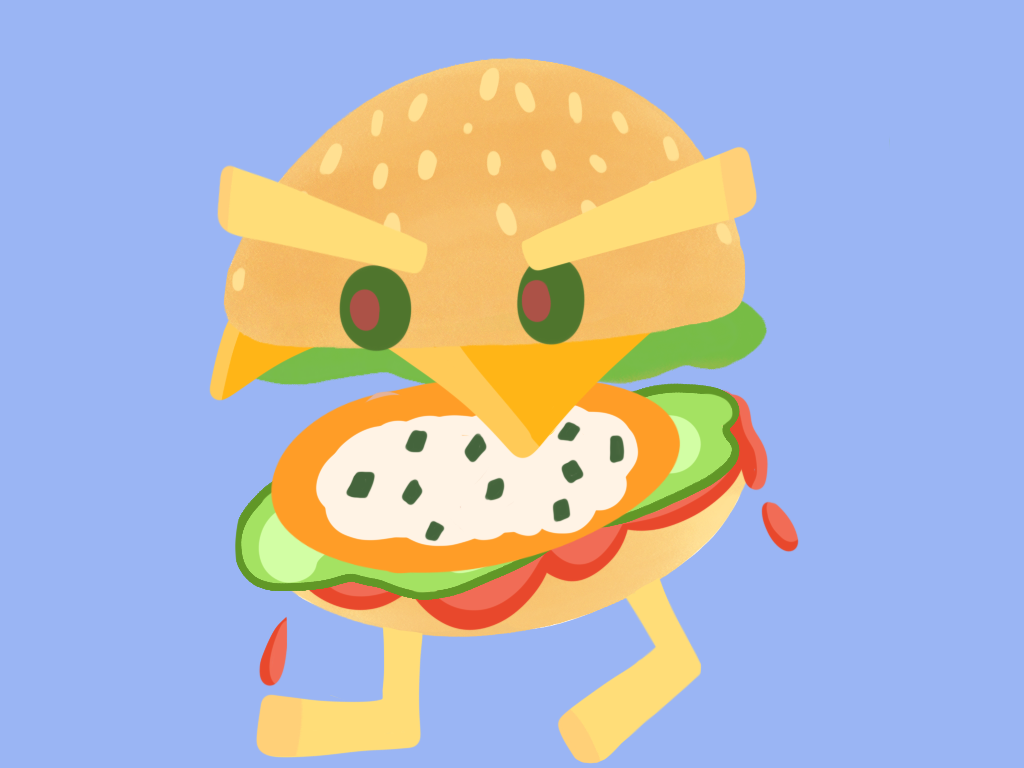 I actually wanted to draw this on Paper but I eventually gave up and drew it digitally (I will be doing the next drawing prompts on paper to be skilled at drawing traditionally) Its a fish burger monster with tartar sauce and olive eyes.