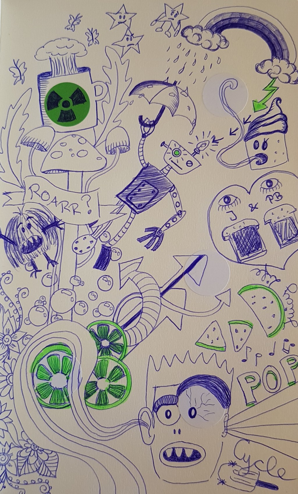 ballpoint pen, bits and bops, doodling, highlighter, random, sketchbook