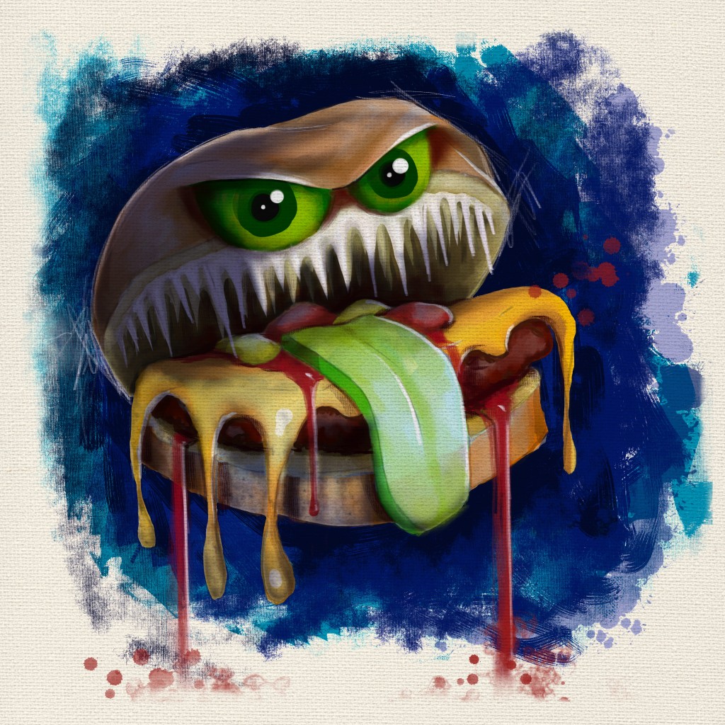 I love how the pickle is the tongue lol Really creative