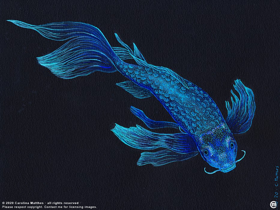 animals, artist, artwork, blackpaper, colorful ink, doodling, drawing, fish, gellypen, illustration, inkillustration, inkpens, inktober 2018, inkwork, koi, nature, pen and ink, traditional, unique, wildlife